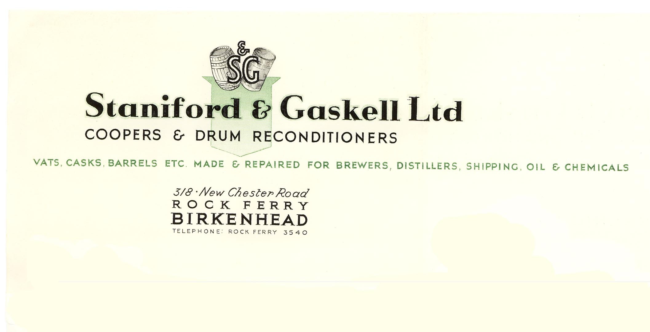 Mr Herbert Staniford and Mr William Gaskell opened Staniford & Gaskell Ltd Cooper & Drum Reconditioners, New Chester Road, Rock Ferry, Merseyside.
