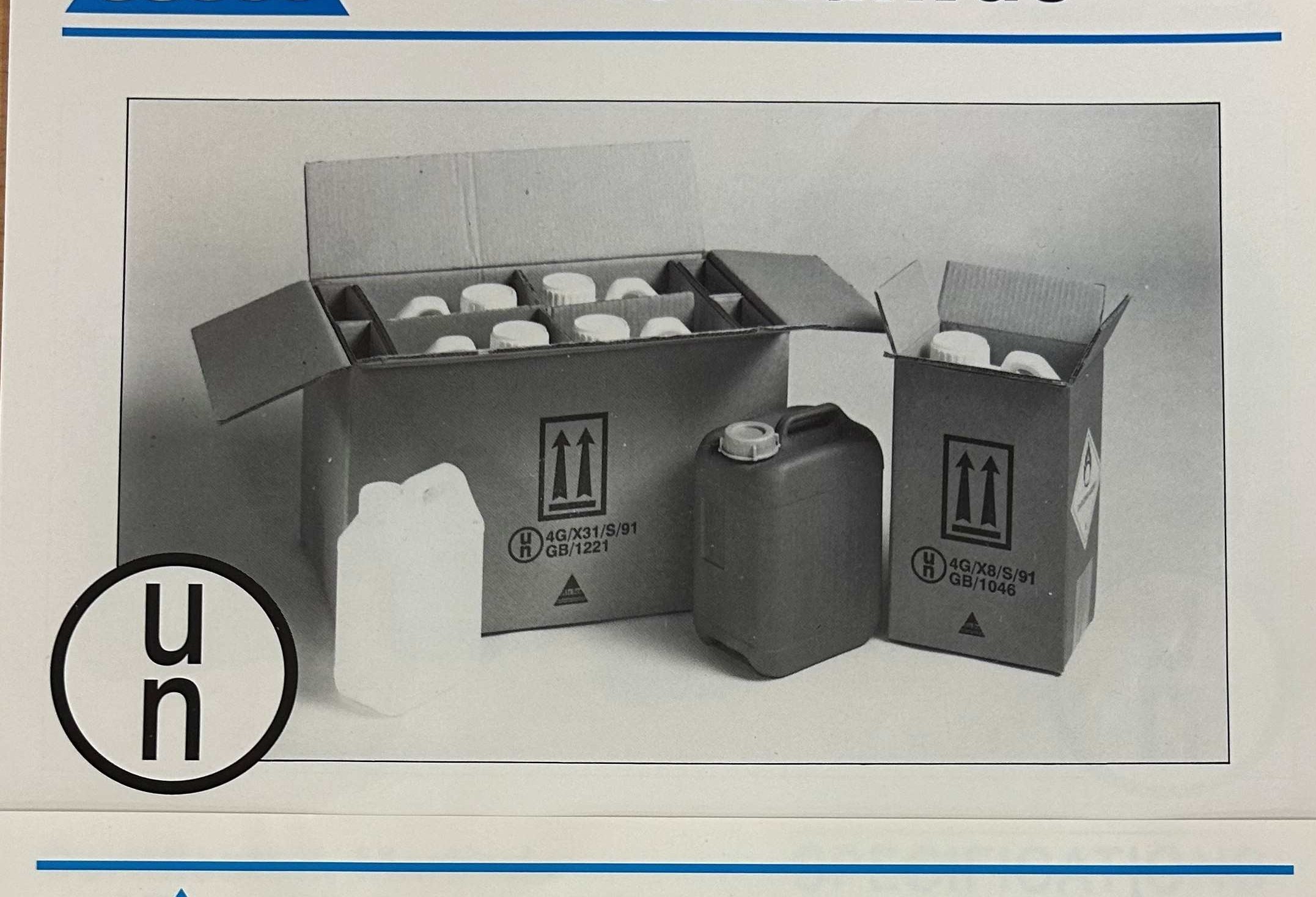 Small 4G packaging range for petrochemical industry based on the heavy duty tinplate drums was developed in 1988. The first UN approval Code GB/0582was created